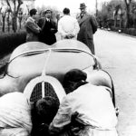 - – Auto Avio Costruzioni 815. – Prima vettura costruita in due esemplari da Ferrari dopo la rottura con l’Alfa Romeo – Nella foto: prove nei pressi di Modena in preparazione alla Mille Miglia. – Nel gruppo di persone a destra e Enzo Ferrari