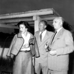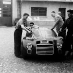 - – Enzo Ferrari con la 125 S nel cortile della Fabbrica. – Al volante e Ferdinando „Nando“ Righetti.