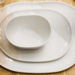 „Nach dem Bauhaus-Künstler László Moholy-Nagy sind Dinge Lichtmodulatoren“, erläutert die Designerin Barbara Schmidt. „‚O‘ formt das Licht durch pointiert gesetzte Falten, die zur Symmetrie der Grundformen jeweils ein spannungsvolles asymmetrisches Element hinzufügen.“ Licht und Schatten können sich auf Porzellan wie auf weißem Papier entfalten. Sie werden Teil der Inszenierung, denn je nach Lichteinfall entsteht ein neues Bild. Das ermöglicht interessante Formkompositionen abhängig vom Arrangement der einzelnen Teller, Platten, Schalen und Tassen auf dem Tisch und abhängig von ihrer Platzierung relativ zur Lichtquelle. Die Tischszenerie wird zur konstruktivistischen Bildkomposition.