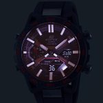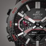 Erstmals lanciert CASIO EDIFICE einen Chronographen dessen Gehäuse vollständig aus Karbonfaser gefertigt ist. Durch das Hightech-Material Karbon verspricht die Uhr hohe Robustheit und gleichzeitig einzigartige Leichtigkeit. Das eindrucksvolle Design der Uhr ist geprägt durch die neu entwickelten, markanten Bandanstöße, welche an die Radaufhängungen von Rennwagen erinnern. Kraftvoll und ausdrucksstark überzeugt die ECB-2000 mit hochwertigem Edelstahlband und angenehmem Tragekomfort.