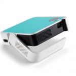 ViewSonic bietet mit dem portablen LED-Beamern M1 Mini mobilen Videospaß. Mit einer Größe von gerade einmal 11 x 10,4 x 2,7 Zentimetern und 300 Gramm Gewicht passt er nicht nur in jede Hosentasche, sondern bietet ernstzunehmende Leistungsdaten. Dazu zählen eine WVGA-Auflösung, eine Helligkeit von 120 LED-Lumen, die Darstellung von 1,07 Millionen Farben sowie zwei integrierte Lautsprecher von JBL für den passenden Klang. Der Projektor im Mini-Format bietet flexible USB- und HDMI-Konnektivität, einem leistungsstarken Akku mit bis zu 2,5 Stunden Laufzeit, die exklusive ViewSonic Cinema SuperColor-Technologie inkl. Abdeckung des Rec. 709-Farbraums und 3D-Fähigkeit. Dabei punktet das fernbedienbare Gerät zusätzlich mit seiner vertikalen Auto-Trapezkorrektur und einer optimierten Ökobilanz. Denn seine quecksilberfreie LED-Lichtquelle mit einer Lebensdauer von bis zu 30.000 Stunden gewährleistet langfristige Haltbarkeit.