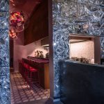 Hier eröffnet sich bereits eine besondere Welt, die einen Outer Space Charakter erkennen lässt. Ein dunkler Raum, nur an einer Seite ausgekleidet mit gewellter Spiegelfolie in Acrylvitrinen, der das Entrée zur darauffolgenden Starkitchen gibt. Die Bar bietet ausgewählte Longdrinks wie Jinzu-Sake Gin Tonic und Shanghai Mule an, die man vor oder nach dem Essen genießen kann.